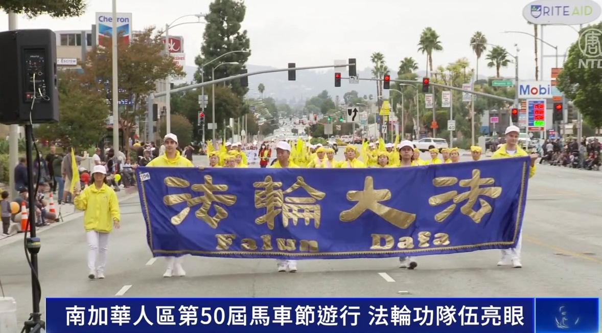 南加华人区第50届马车节游行 法轮功队伍亮眼