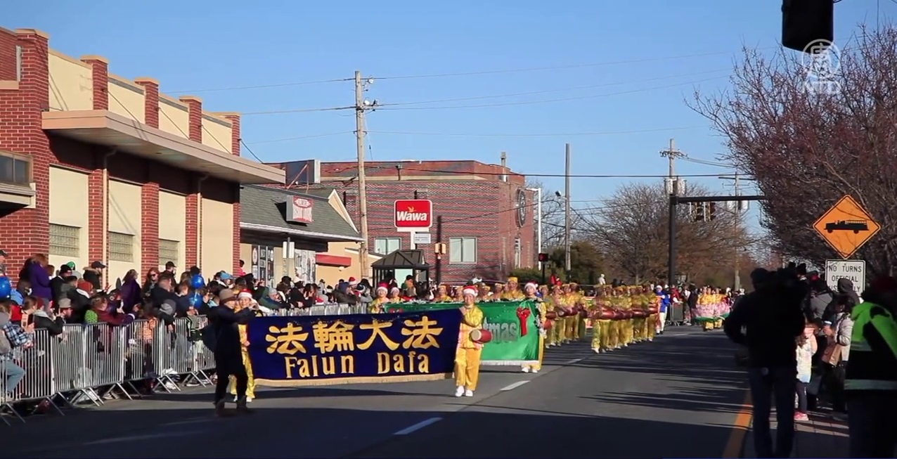 特拉华小镇圣诞节游行 法轮功学员腰鼓队受欢迎