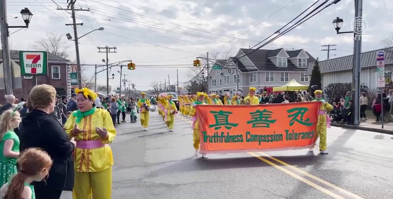美国新泽西州圣派翠克节游行 法轮功队伍受欢迎