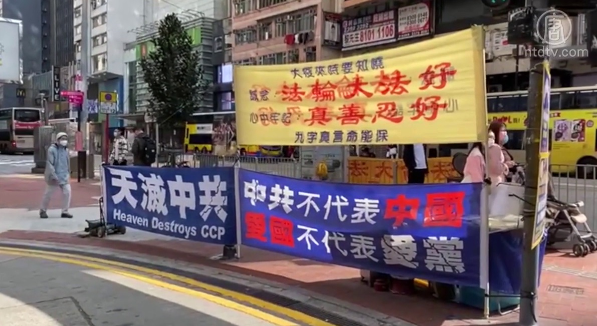 恐吓真相点?港法轮功学员家被泼红漆